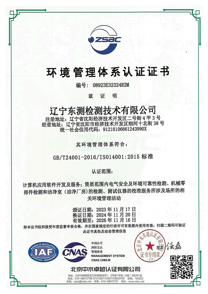 環(huán)境管理體系認(rèn)證證書(shū)